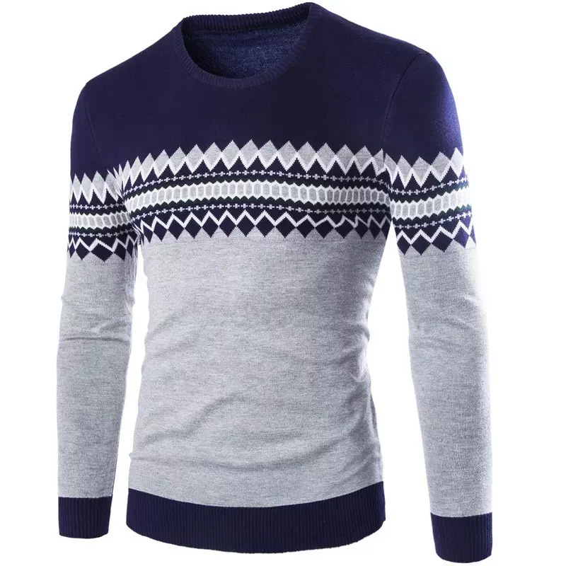Men’s Sweater Classic Desgin Long Sleeve Blue & White